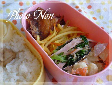 ゆで卵のみじん切りと鮭フレークみたいなんが挟んであった