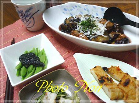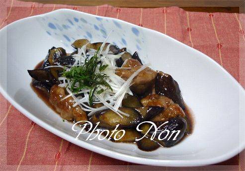 )を入れて煮からめるナスは油をすうので、下ごしらえの時に塩少々を振り、しばらくおいておく