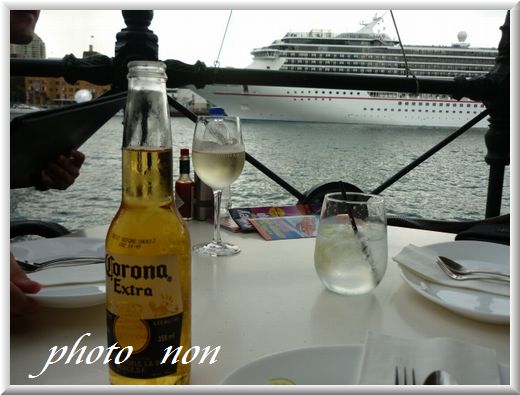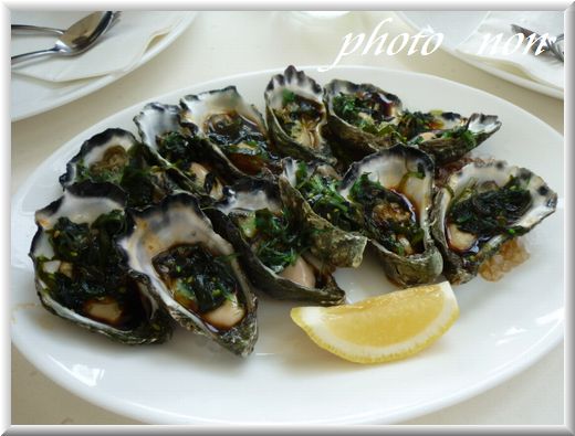 海辺のテラスで生ガキを食べたで 山盛りのポテト 美味しかったわ