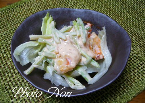 海老とアスパラを茹でて調味料と混ぜ合わせるだけ