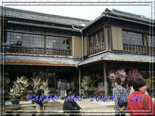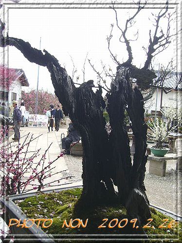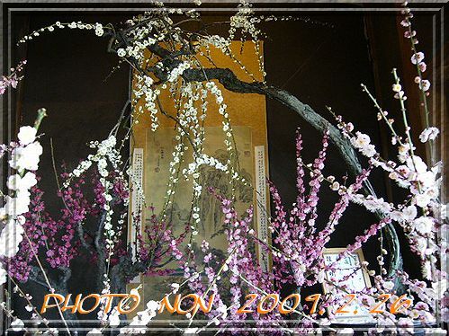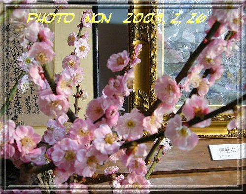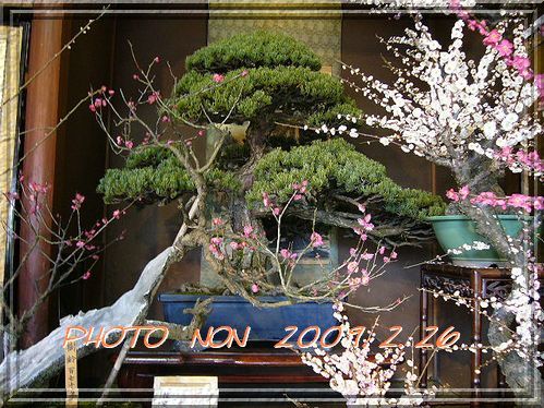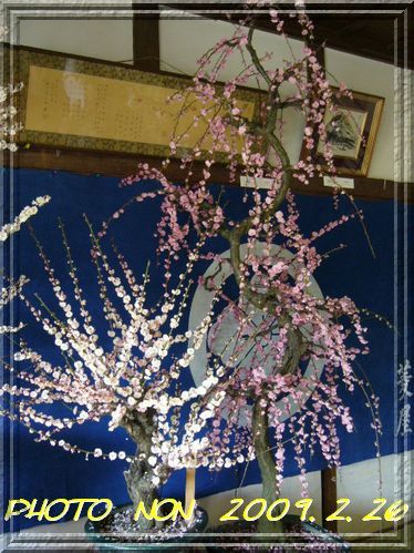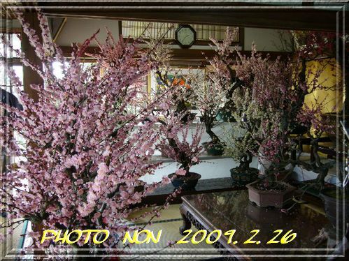 立派なお座敷に所狭しと梅の鉢植えが置いてるねん。