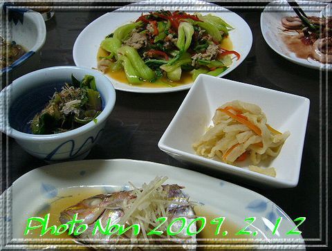 後はほうれん草のカボス酢和えとお弁当の残りの白菜の煮浸し、お漬物でした