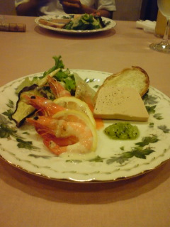 小エビのカクテルソース・フォアグラのパテ(テリーヌ?)