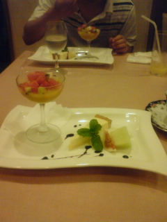 季節の果物・チーズケーキ(ブルーベリーソース)・マンゴーのジュレ