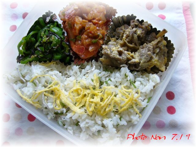 ご飯は 青じそとちりめんとゴマを混ぜ合わせたもの♪