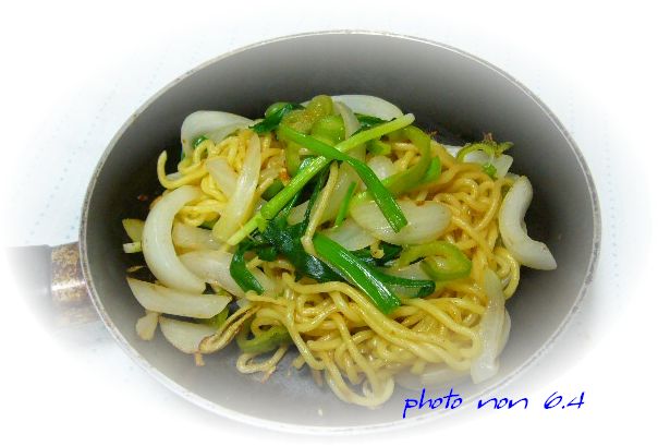 玉ねぎ・ピーマン・青ねぎだけの塩焼きそば♪
