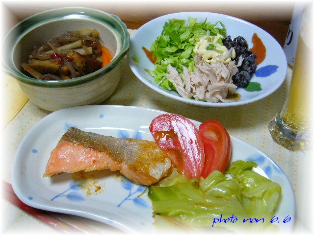 鮭を焼いたので、のん