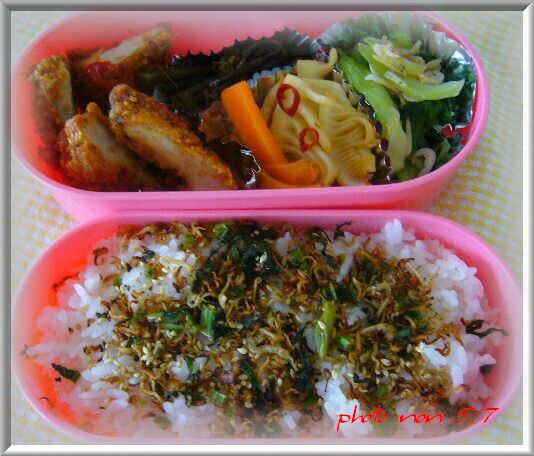 ご飯の上は「大根葉とちりめんとゴマのふりかけ」