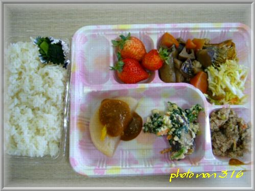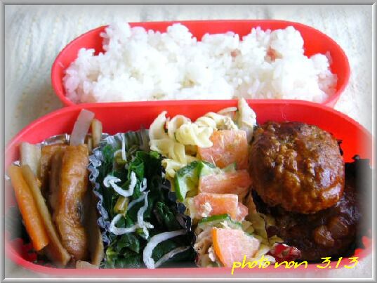 は・・・「ハンバーグ」「ほうれん草とちりめんのポンズ和え」